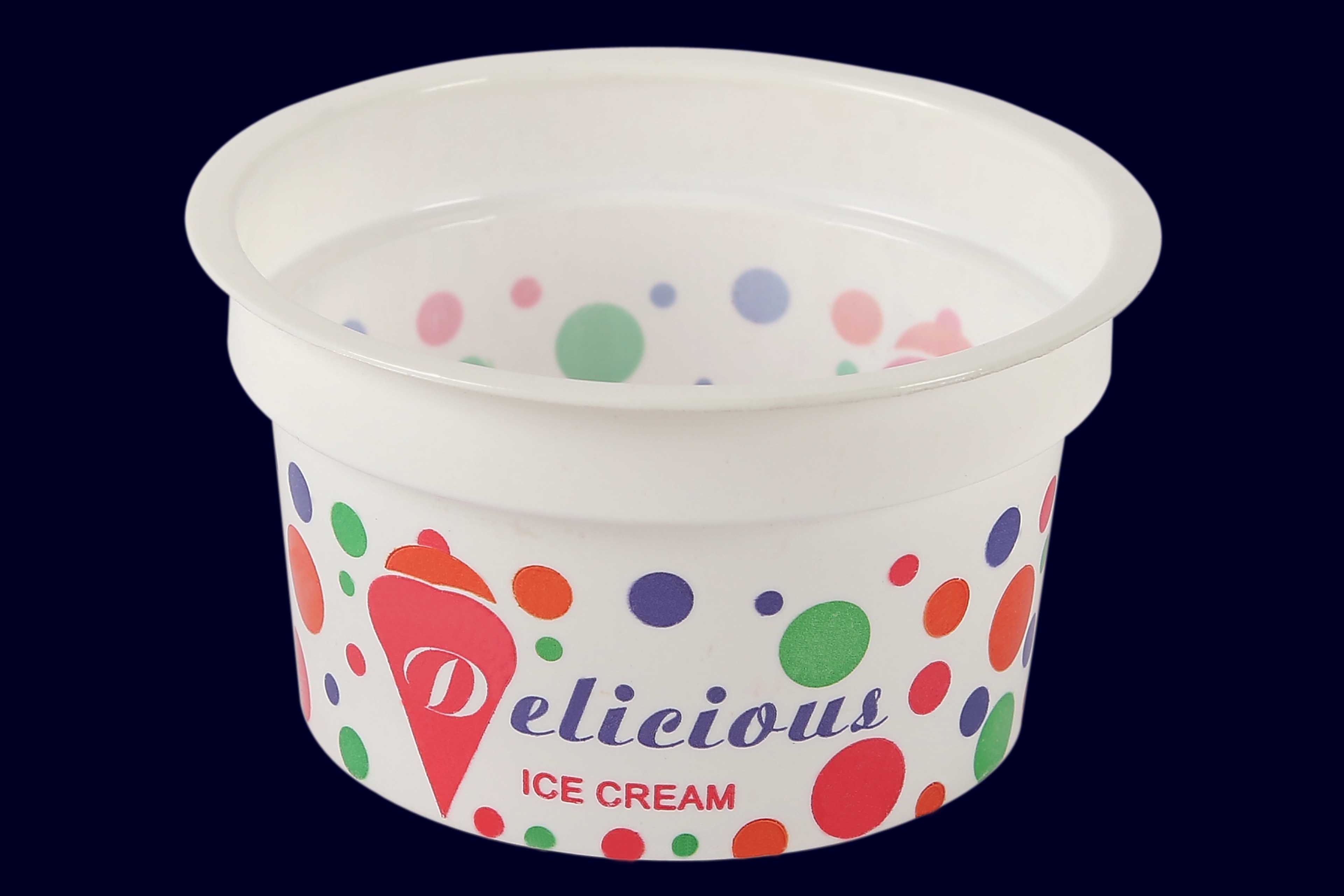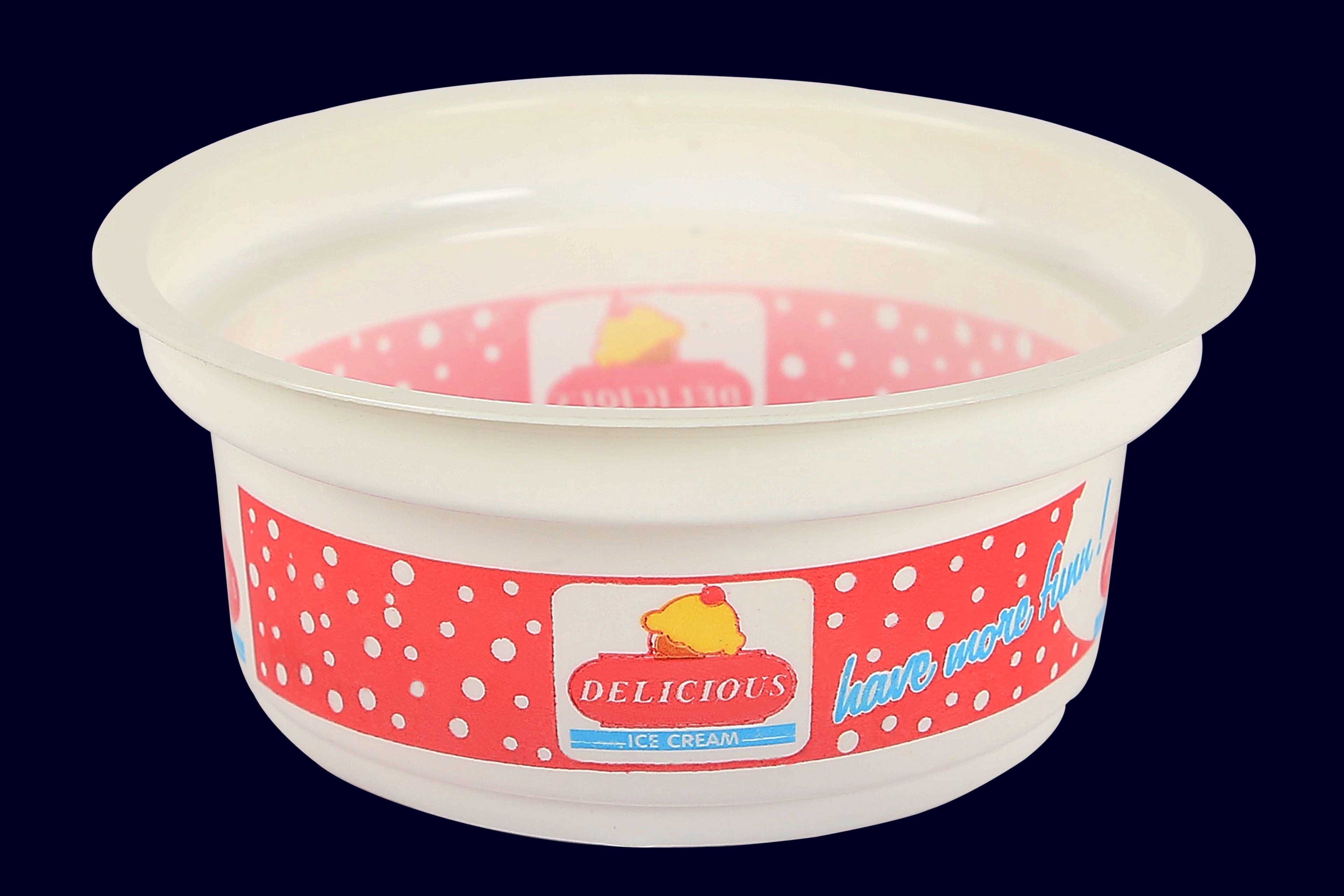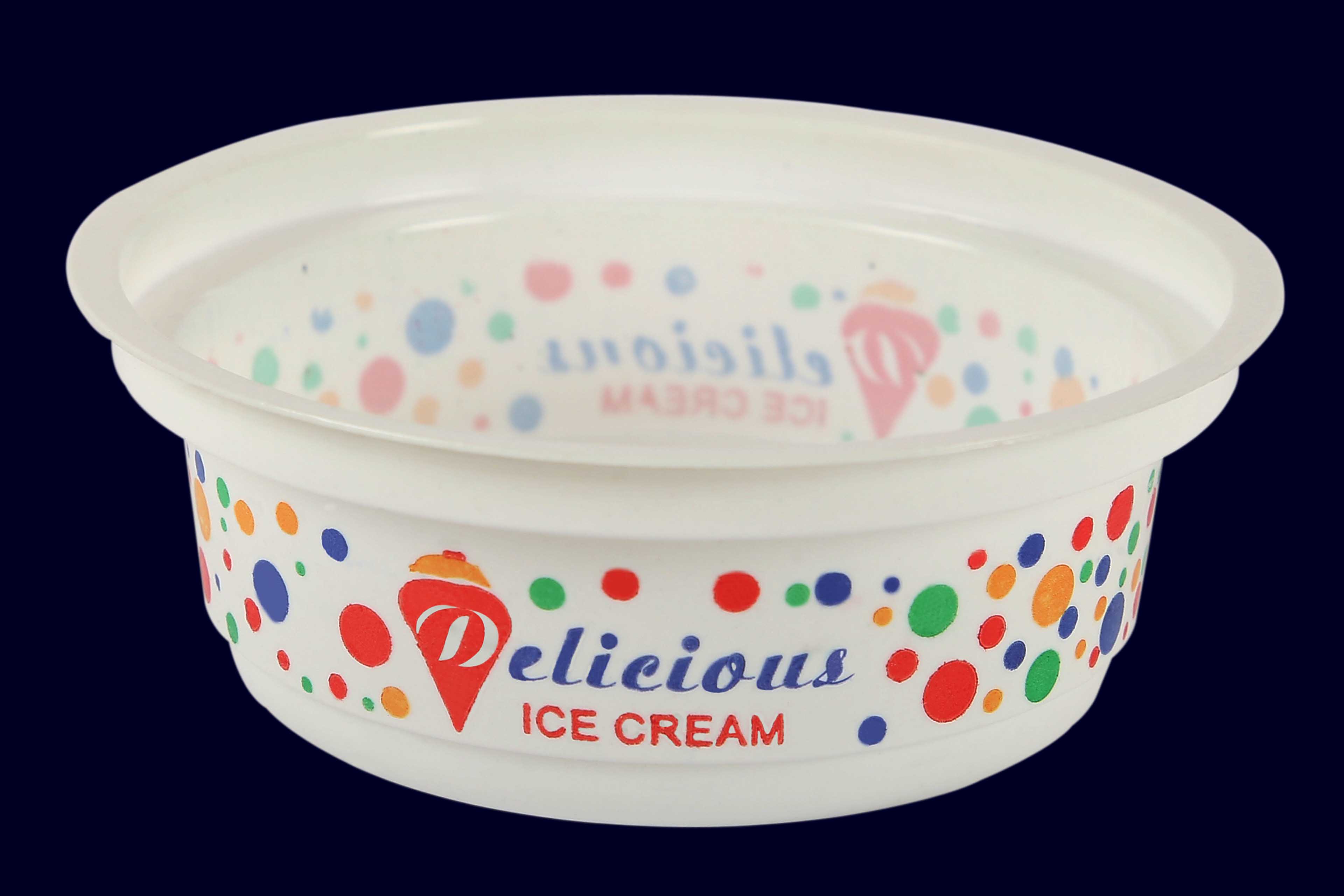 Usage: Disposable tumbler for printed packaged drinking water, soft drinks, ice cream, curd and printed round containers for packing, storing and selling edible items in dry, soft and fluid forms with option of top sealing at user’s end. Packed product can be heated in micro oven and stored in refrigerator / freezer.